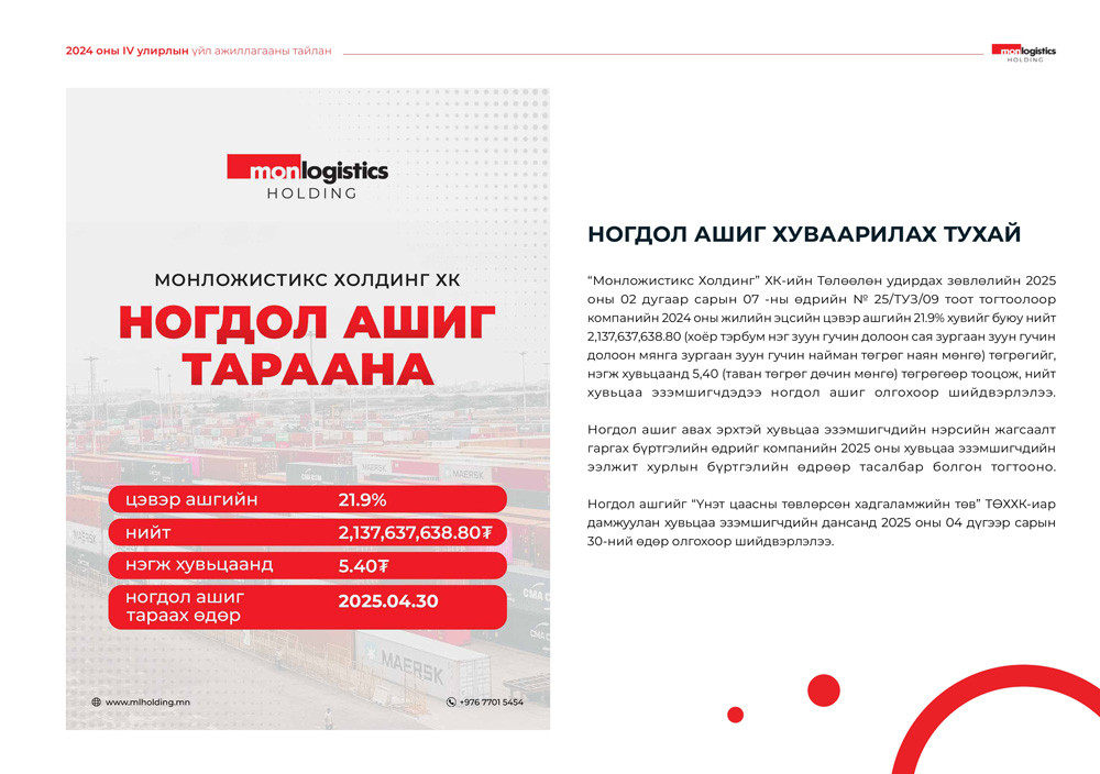 ByNews-AdminFebruary 8, 2025Ниссан Мотор Корпорацын албан ёсны төлөөлөгч Моннис Моторс ХХК нь 2024 оны...